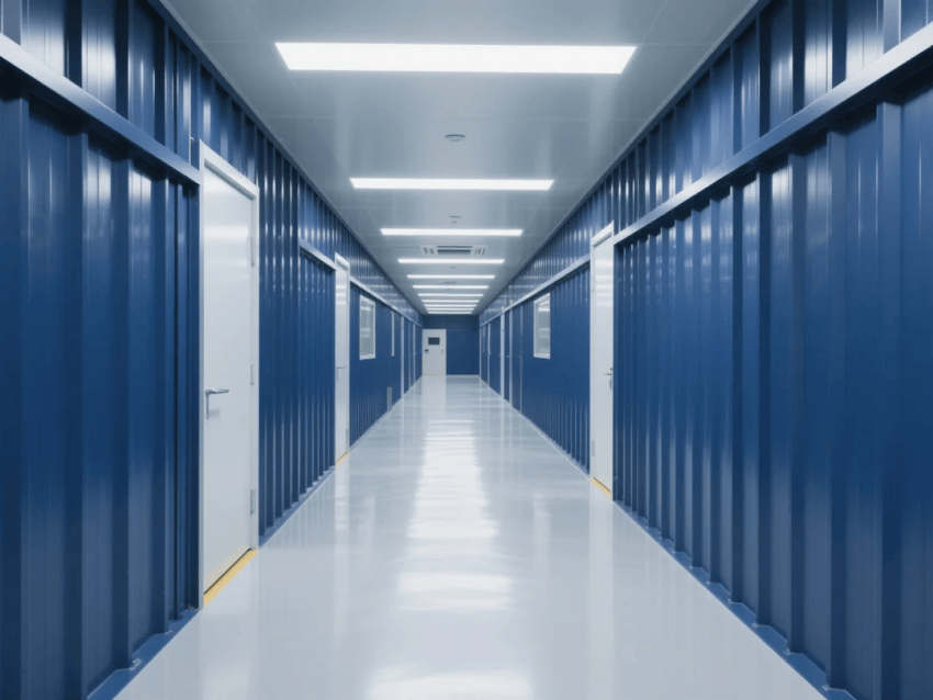 車間采用模塊化潔凈室結(jié)構(gòu),墻體采用50mm厚深藍抗菌彩鋼板,接縫處采用圓弧處理工藝。自動化沖壓線與激光焊接工作站呈U型交替布局,工作站間設(shè)置深灰不銹鋼傳遞窗,確保物料流轉(zhuǎn)潔凈度。吊頂系統(tǒng)配置FFU高效過濾單元,維持≥20次/h換氣次數(shù),氣流組織采用頂送側(cè)回模式。