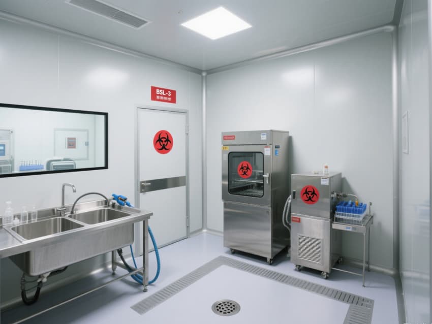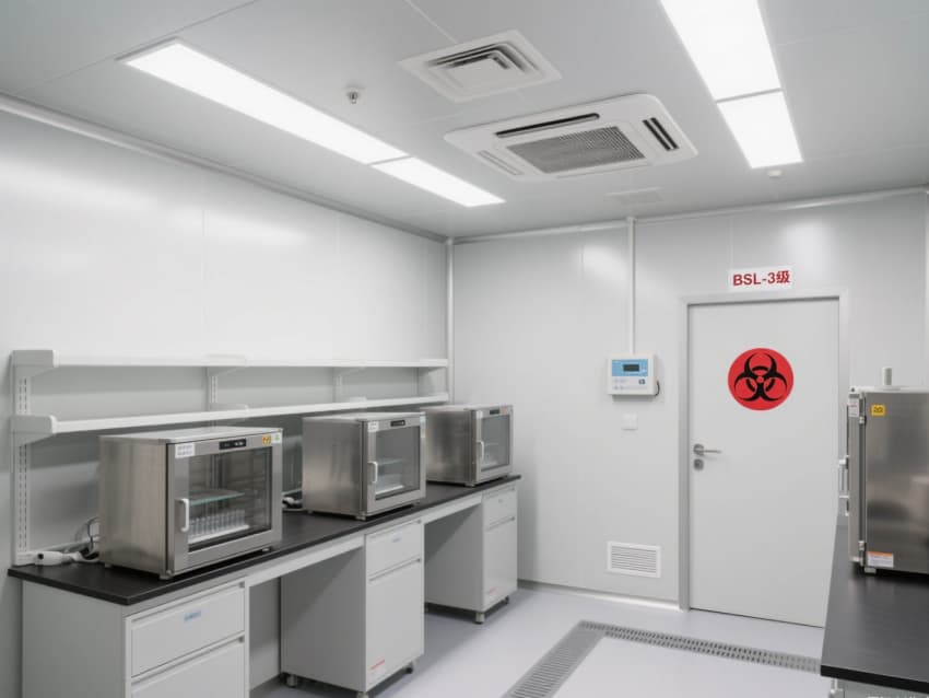 實(shí)驗(yàn)室核心區(qū)域配備負(fù)壓生物安全柜、雙扉高壓滅菌器,確保微生物操作與廢棄物處理安全;頂部高效空氣過濾器(HEPA)實(shí)現(xiàn)每小時15-20次空氣置換,尾氣經(jīng)消毒處理后排放,避免氣溶膠擴(kuò)散。互鎖式潔凈門、雙層鋼化玻璃觀察窗與應(yīng)急噴淋裝置,形成全流程安全保障。?