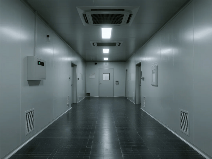 空氣凈化:天花滿布FFU+ULPA超高效過濾器,換氣次數(shù)≥60次/h,維持0.45m/s垂直層流;