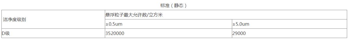 12、潔凈度靜態(tài)測試:在生產(chǎn)操作全部結(jié)束以后,全部操作人員撤出生產(chǎn)現(xiàn)場,經(jīng)20分鐘的自凈后,進(jìn)行空氣懸浮粒子的靜態(tài)檢測,并確定警戒限和糾偏限(分別暫定為法定標(biāo)準(zhǔn)的50%及80%)。制劑車間的潔凈級(jí)別為D級(jí),在靜態(tài)情況下,靜態(tài)的標(biāo)準(zhǔn)為: