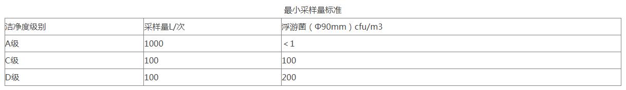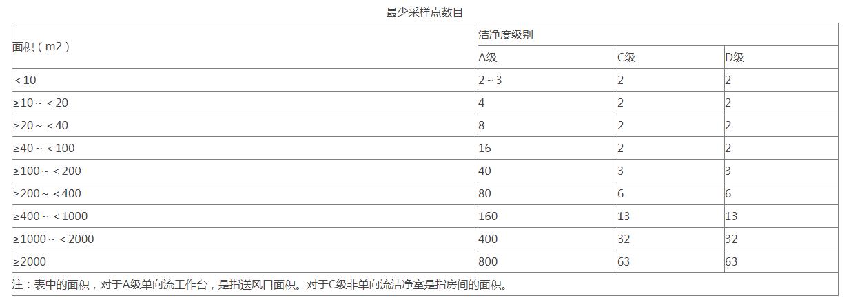采樣次數(shù)的限定對于任何小潔凈室或局部空氣凈化區(qū)域,采樣點(diǎn)的數(shù)目不得少于2個(gè),總采樣次數(shù)不得少于5次。每個(gè)采樣點(diǎn)的采樣次數(shù)可以多于1次,且不同采樣點(diǎn)的采樣次數(shù)可以不同。