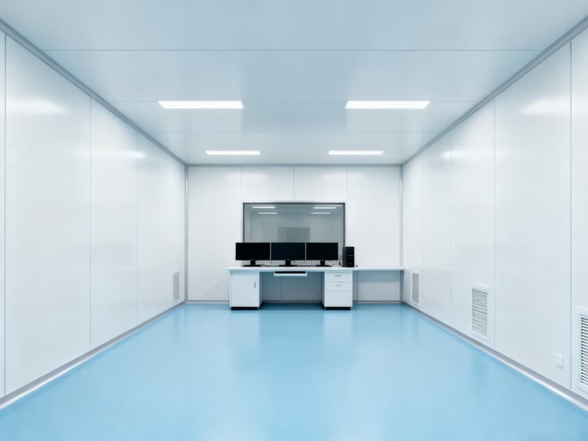 車間環(huán)境控制優(yōu)勢顯著:地面采用淺藍色防靜電環(huán)氧材質,有效規(guī)避靜電對量子元件的干擾;四周白色抗菌墻面經特殊涂層處理,粉塵附著率低于0.1%,配合全密封吊頂設計,可維持千級潔凈度,滿足量子器件對微環(huán)境的極高要求。?