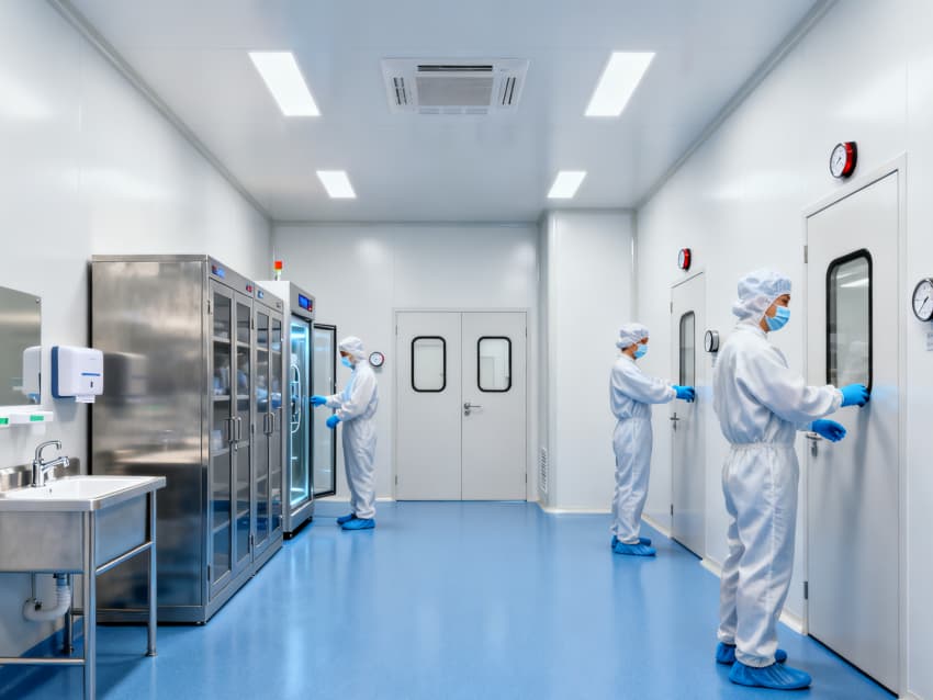 本體外診斷試劑生產(chǎn)廠房統(tǒng)一采用藍(lán)色抗菌潔凈地坪與白色無縫抗菌墻面,適配試劑研發(fā)、生產(chǎn)、檢驗(yàn)全流程,各車間潔凈度等級及凈化系統(tǒng)參數(shù)精準(zhǔn)匹配工藝需求。藍(lán)色地面具備耐化學(xué)腐蝕、易消殺特性,白色墻面減少粉塵吸附,為凈化系統(tǒng)高效運(yùn)行奠定基礎(chǔ)。