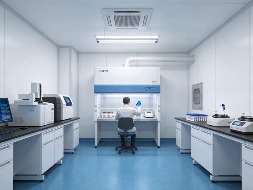 CGT醫(yī)藥研發(fā)生產(chǎn)車間內(nèi)部采用藍(lán)色地面與白色墻壁的簡(jiǎn)約統(tǒng)一風(fēng)格,嚴(yán)格契合GMP最高等級(jí)潔凈規(guī)范,精準(zhǔn)匹配細(xì)胞治療、基因工程等研發(fā)生產(chǎn)的無(wú)菌嚴(yán)苛需求。藍(lán)色地面選用醫(yī)用級(jí)高活性抗菌環(huán)氧自流平材質(zhì),經(jīng)基層拋丸強(qiáng)化、抗菌底漆涂刷、環(huán)氧砂漿找平、抗菌罩面固化四道核心工序,表面平整無(wú)縫隙,具備強(qiáng)效殺菌特性,可耐受高頻次過(guò)氧化氫熏蒸、酒精擦拭等清潔消毒作業(yè),杜絕微生物滋生與交叉污染。