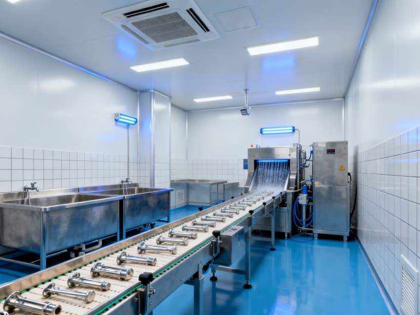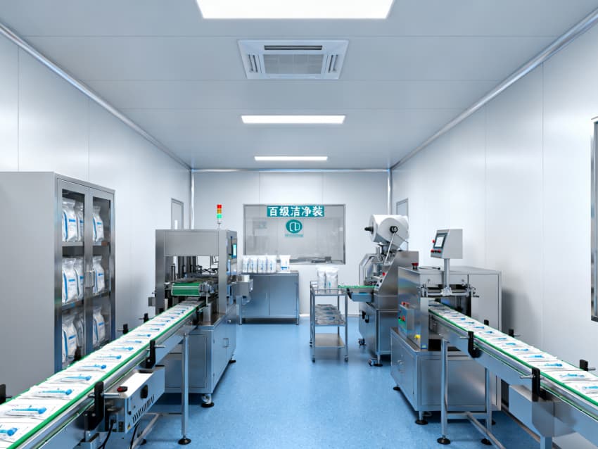 凈化配套設(shè)計全面:藍(lán)色地面具備抗菌、易消殺特性,配合地面導(dǎo)坡設(shè)計加速清潔排水,減少污漬殘留;白色墻面采用無縫抗菌涂層,消除清潔死角,降低微生物附著風(fēng)險;全車間劃分獨(dú)立凈化分區(qū),通過壓差控制預(yù)留設(shè)計隔絕不同潔凈等級區(qū)域,人流、物流通道分離避免交叉污染,全方位保障無菌生產(chǎn)環(huán)境穩(wěn)定達(dá)標(biāo)。