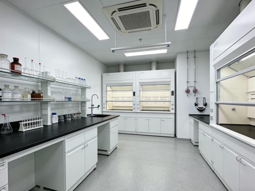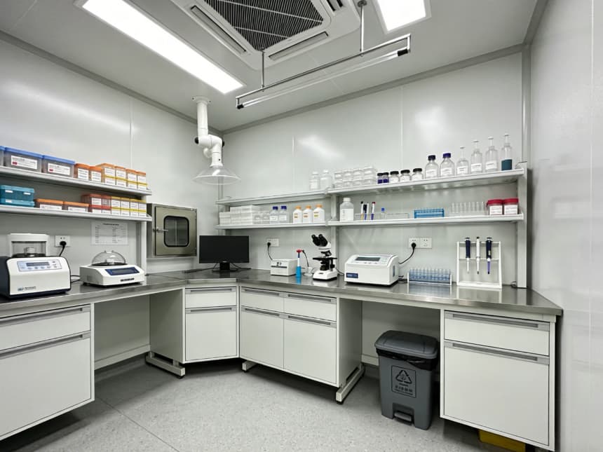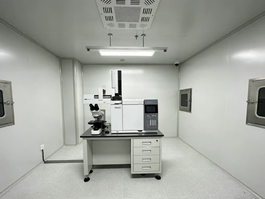 內(nèi)部檢測(cè)空間均以淺灰色耐磨地坪搭配白色無縫潔凈墻面,視覺整潔且適配檢測(cè)核心需求。淺灰色地面選用高硬度環(huán)氧材質(zhì),抗壓耐磨、抗污易清潔,可耐受檢測(cè)過程中各類試劑殘留與設(shè)備搬運(yùn)磨損;白色墻面采用環(huán)保抗菌涂層,平整度高、反光均勻,搭配嵌入式防眩光照明,為精密檢測(cè)提供清晰穩(wěn)定的視覺環(huán)境,減少誤差干擾。