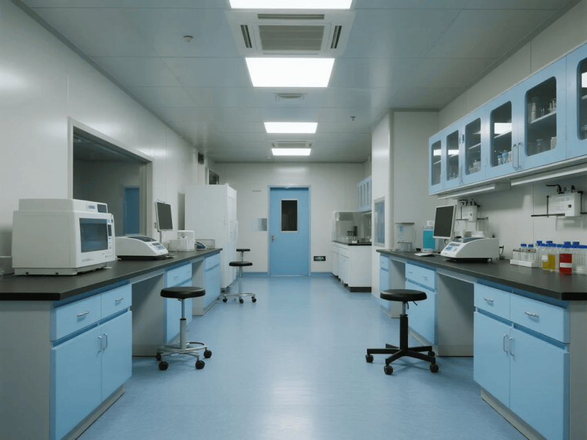 墻面采用深海藍(lán)抗菌彩鋼板,反射率精準(zhǔn)控制在35%-40%