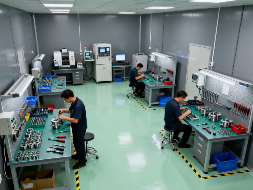 全車間統(tǒng)一預(yù)留標(biāo)準(zhǔn)化電源接口、壓縮空氣管路及 coolant 回收通道,層高5米適配各類大型CNC設(shè)備安裝調(diào)試。地面隱形標(biāo)識清晰劃分加工區(qū)、通道區(qū)及安全區(qū)域,墻面張貼設(shè)備操作規(guī)范預(yù)留位。整體設(shè)計兼顧實用性與安全性,為精密CNC加工提供穩(wěn)定、高效的生產(chǎn)環(huán)境,助力保障零件加工精度與生產(chǎn)效率。