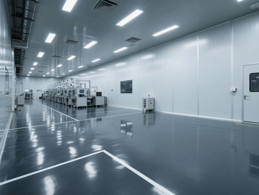 本項(xiàng)目以"工業(yè)賽博風(fēng)"為設(shè)計(jì)理念,打造符合ISO14644-1Class7標(biāo)準(zhǔn)的氫燃料電池組件潔凈生產(chǎn)環(huán)境。車間主體采用白色彩鋼板墻體與金屬灰防靜電環(huán)氧自流平地坪的
