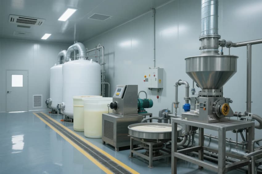 整個(gè)車間以白色為主色調(diào),營造出干凈、整潔的氛圍。地面采用了光滑的白色瓷磚,便于清潔和維護(hù)。車間內(nèi)的門和門框大多是不銹鋼材質(zhì),顯得堅(jiān)固且易于清潔。 車