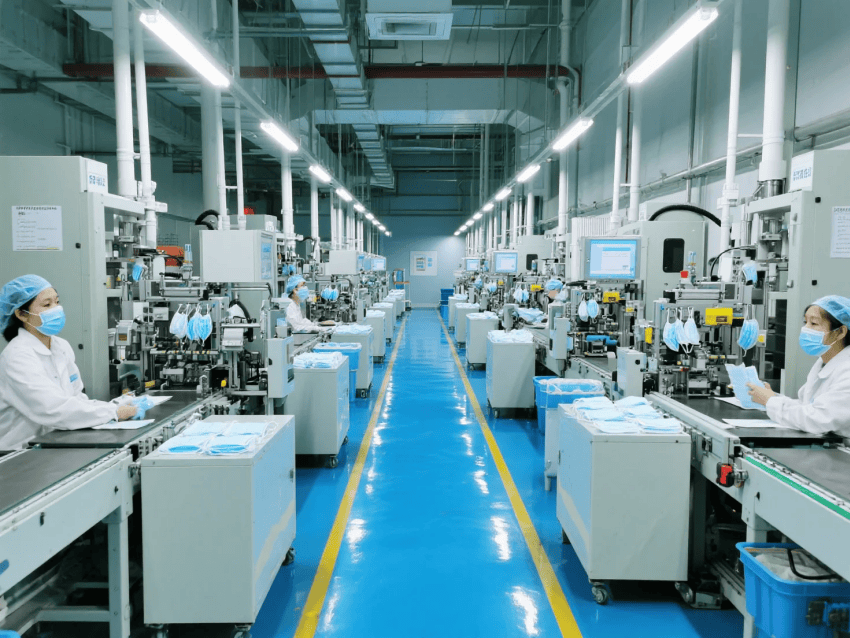 本方案采用"醫(yī)療工業(yè)極簡風(fēng)",符合YY/T0969-2013口罩行業(yè)標(biāo)準(zhǔn)。車間按功能分區(qū): 原料區(qū)(熔噴布恒溫儲存23±2℃) 生產(chǎn)區(qū)(超聲波焊接噪音<75dB) 滅菌
