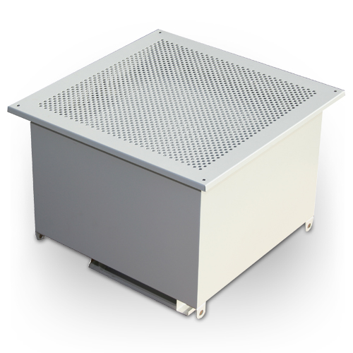箱體主要采用冷軋鋼板已焊接的方式連接,且所有的焊接都經(jīng)過(guò)特殊的膠密封處理,以防止空氣泄漏。散流板以固定螺栓所固定,安裝及拆卸較為方便,更換過(guò)濾器時(shí),可直接在天花底部進(jìn)行操作,而無(wú)需拆除天花板系統(tǒng)上的箱體。