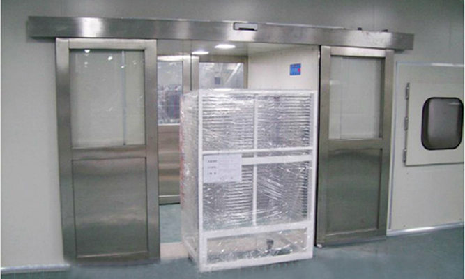 貨淋室是物料進入潔凈室所必需的通道,它可以減少物料進出潔凈室所帶來的污染問題。當物料進入貨淋室后,高速潔凈氣流經(jīng)高效過濾器過濾后由可旋轉(zhuǎn)噴嘴從各個方向噴射至物料身上,有效而迅速清物料所攜帶的塵埃粒子。