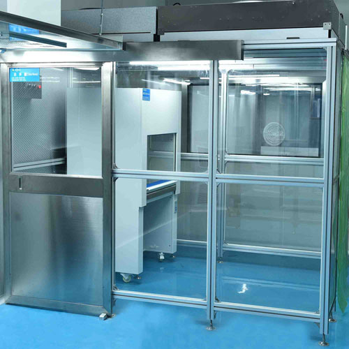 凈化工作棚采用工業(yè)鋁材(或不銹鋼方通、鐵方通噴塑)作為框架,風(fēng)機(jī)濾網(wǎng)機(jī)組(ffu)送風(fēng),四周懸掛防靜電垂簾(或有機(jī)玻璃),其內(nèi)部凈化級(jí)別可達(dá)到100-10000級(jí)。適用于操作區(qū)內(nèi)局部凈化級(jí)別要求高的區(qū)域。