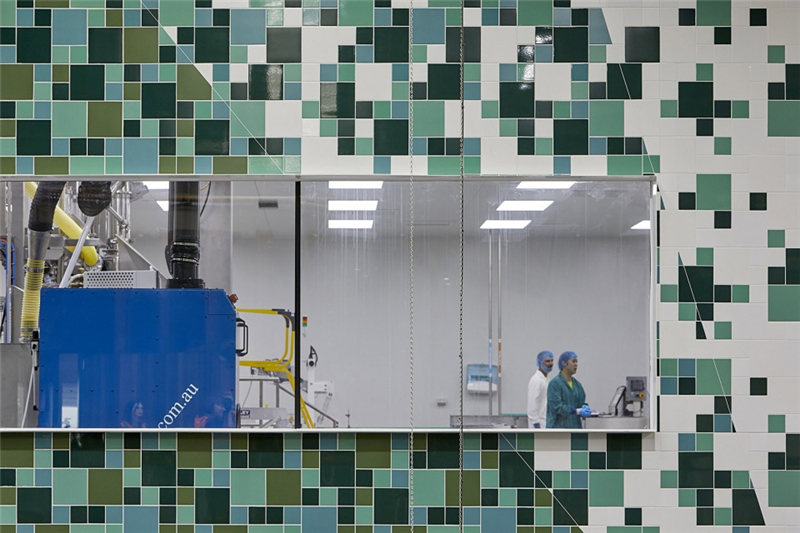 多彩的線條從附近的自然保護(hù)區(qū)一直延伸到位于生產(chǎn)區(qū)核心地帶的巨型壁畫(huà)上,吸引著員工和參觀工廠的訪客。產(chǎn)自本地的澳洲硬木和紋理豐富的墻面從外部景觀“流進(jìn)”室內(nèi),在自然光線的配合下?tīng)I(yíng)造出富有生機(jī)的氛圍。