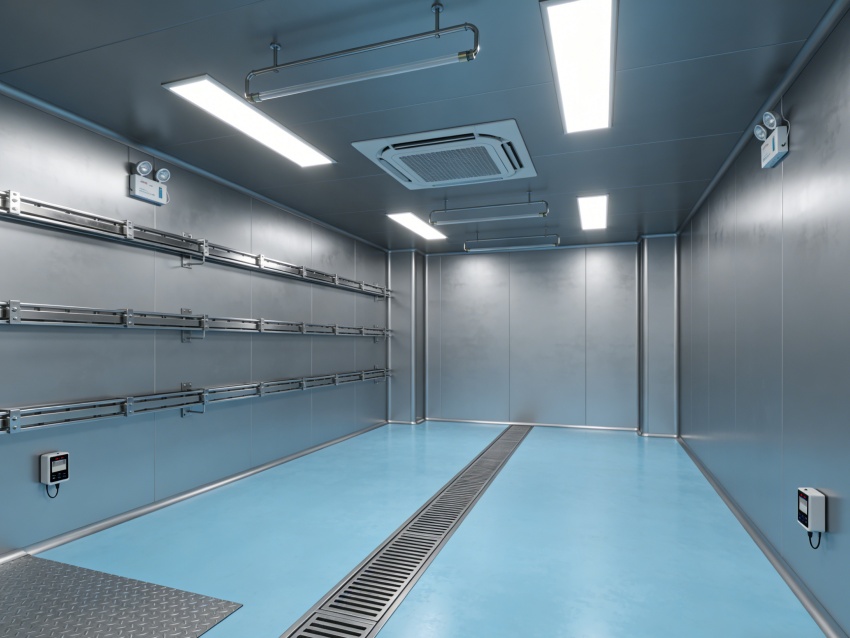 核心施工強化保溫隔熱基礎(chǔ)。圍護(hù)結(jié)構(gòu)選用0.8mm厚彩鋼板,芯材導(dǎo)熱系數(shù)≤0.03W/(m·K),拼接處打滿專用密封膠,膠縫寬度3-5mm無氣泡;墻面與地面、吊頂交接處做圓弧處理,兼顧潔凈與保溫。地面采用保溫環(huán)氧自流平,基層鋪設(shè)保溫層,減少地面熱傳導(dǎo);門窗選用斷橋鋁+雙層中空Low-E玻璃,配備雙層密封膠條,杜絕冷熱交換導(dǎo)致的溫濕波動。
