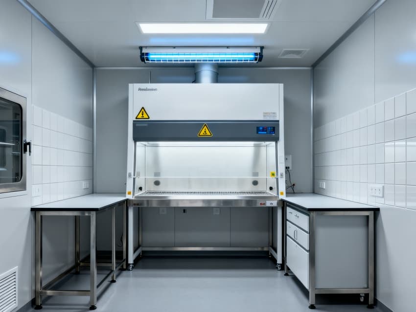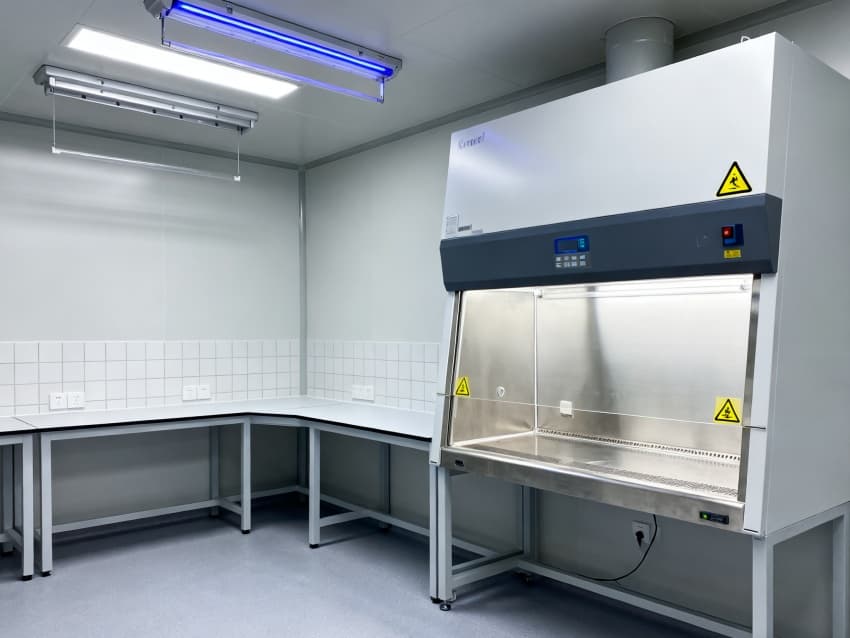 圍護結構選用304不銹鋼抗菌墻板與無縫PVC地面,轉角圓弧處理無衛(wèi)生死角,配套紫外消毒系統(tǒng)與恒溫恒濕控制(22±1℃,50±5%RH),全面滿足微生物研究的無菌環(huán)境要求。