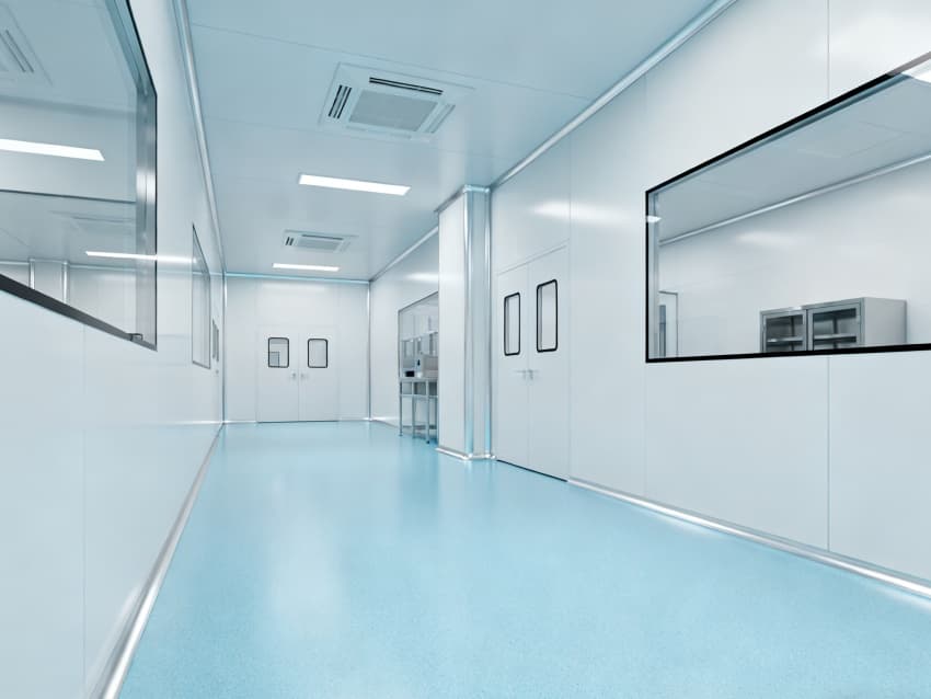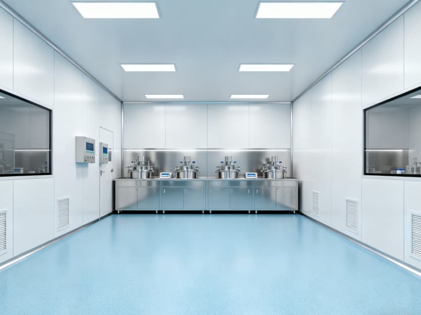 在環(huán)境控制層面,本設(shè)計(jì)彰顯卓越優(yōu)勢:地面選用淺藍(lán)色防滑防腐蝕環(huán)氧材料,不僅具備優(yōu)異的抗藥劑侵蝕性能,而且清潔消毒極為便捷;四周白色抗菌墻面采用圓弧轉(zhuǎn)角工藝,有效規(guī)避粉塵積聚風(fēng)險,搭配全吊頂潔凈送風(fēng)系統(tǒng),可將潔凈度穩(wěn)定維持在萬級標(biāo)準(zhǔn),精準(zhǔn)契合藥劑生產(chǎn)對微環(huán)境的嚴(yán)苛需求。?